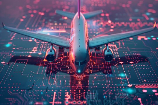 A digital twin of an airplane being used by aerospace engineers to test flight conditions and system reliability in a virtual environment