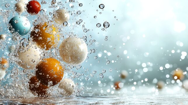 A cheerful young boy swims joyfully in a clear pool filled with vibrant floating balls. His infectious smile radiates happiness on a warm and sunny day, creating a playful atmosphere
