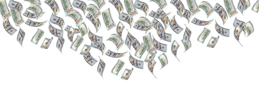 Flying money 100 dollar isolated with clipping path on  background.
