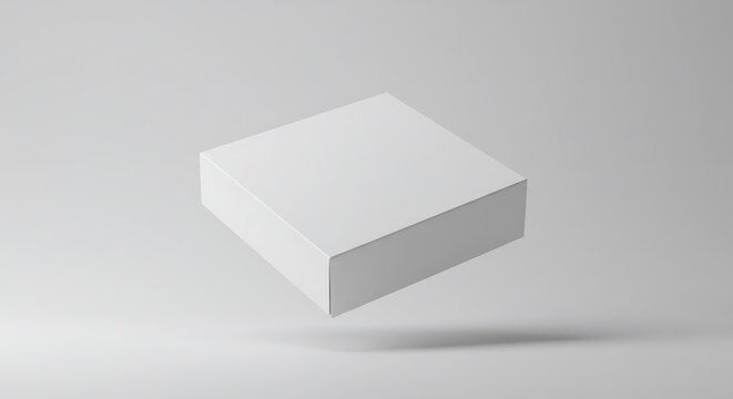 A minimalist 3D mockup of a floating white box, levitating over a clean gray background. (AI Generated)