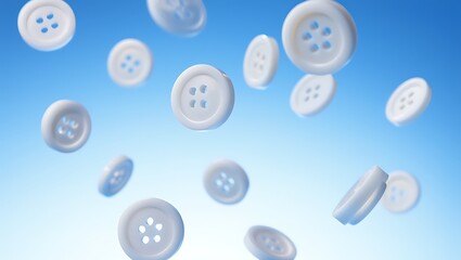 Colorful buttons in various shapes and sizes are floating against a soft blue background, showcasing vibrant hues and intricate details, perfect for sewing projects or creative design concepts