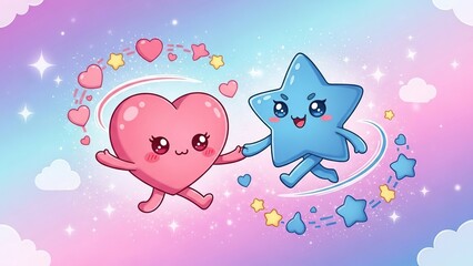 Two adorable cartoon polar bears exchanging a gift with a red ribbon, surrounded by floating hearts, conveying love and friendship in a playful illustration