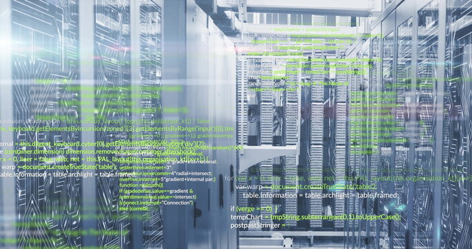 Floating Code Overlay In Data Center With Server Rack Images