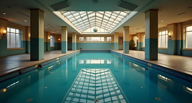 Modern pool with sunlit columns