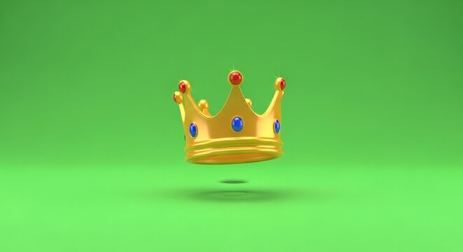 Luxurious british empire golden crown with ruby embellishments on blue background