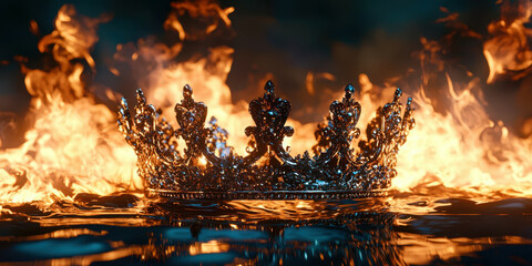 A golden crown is floating on top of a fire