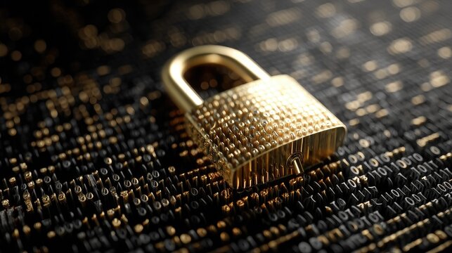 Golden Padlock Symbolizing Digital Data Security and Encryption