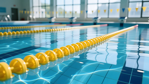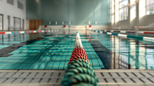 Close-Up of Swimming Pool Lane Divider with Blurred Background in Indoor Pool