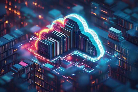 A person is using their laptop to create an online document, with digital icons floating above the screen and highlighting various documents or VR playing cards.
