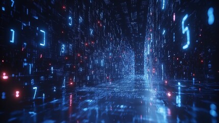 Abstract digital background with floating blue and red numbers in a futuristic space