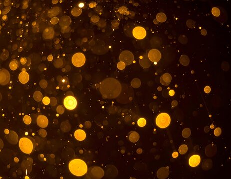 Golden orbs of light floating against a dark background