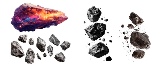 Asteroids Floating in Space Amidst a Dark Cosmic Background During a Celestial Phenomenon