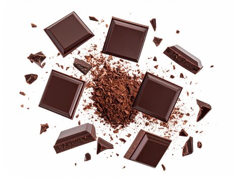 Swirled chocolate wafer sticks and fragments float against a black backdrop