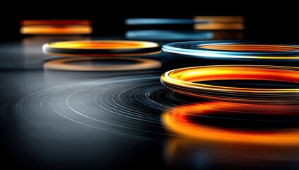 Abstract golden rings floating on pastel background in surreal minimal modern artistic composition