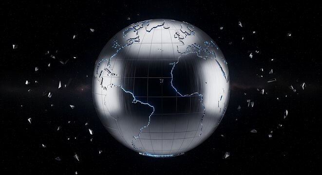 A Mesmerizing Glimpse of Earth's Futuristic Orb Floating in the Void Surrounded by Cosmic Debris and Stardust Displayed as a Stunning Desktop Background