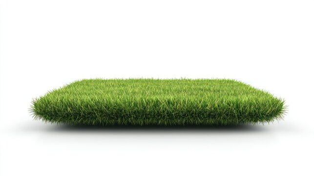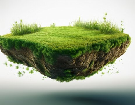 Patch of Green: A lush, square patch of vibrant green grass, meticulously trimmed, isolated and floating in the air. It represents a symbol of freshness and natural beauty.