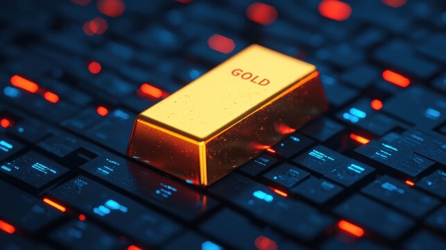 Gold bar floating on virtual price indicators representing modern digital investment portfolios