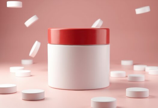 A white jar of cream is floating in the air