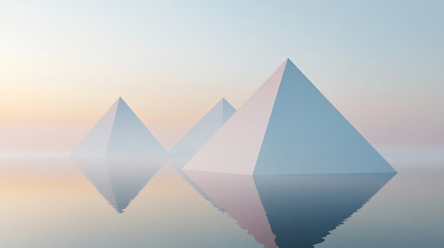 A floating glass pyramid above a glossy marble floor symbolizing clarity balance and futuristic design representing elegance minimalism and the harmony of light structure and reflection