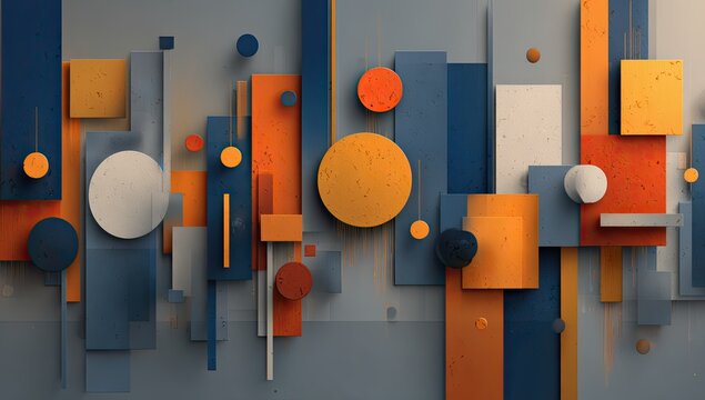 Abstract geometric circles, squares, rectangles float
