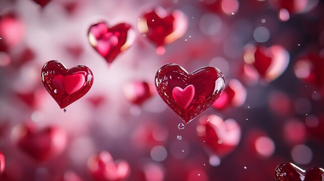A vibrant and romantic scene featuring numerous red hearts floating in a blurred, colorful background, evoking feelings of love and affection.