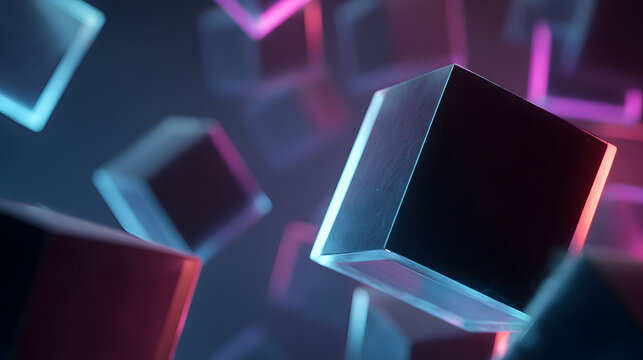 Abstract Geometric Floating Squares Background with Soft Lighting and Depth of Field Creating a Modern and Elegant Design
