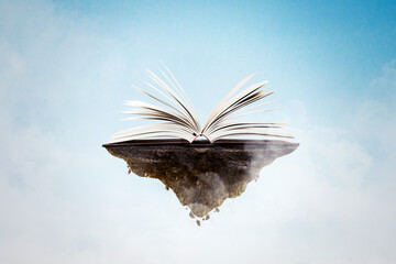 a floating island covered in lush green grass. with a rocky underside. creating a surreal and imaginative landscape this concept often symbolizes nature. creativity. and fantasy in artistic representa