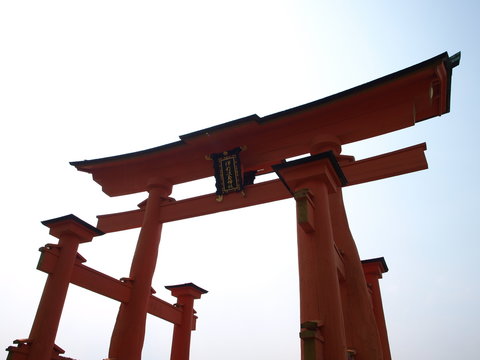 Tori Gate during high tide Itsukushima Shrine in Hiroshima Japan
