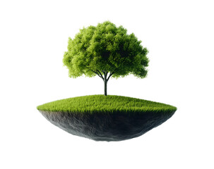 A solitary tree atop a floating rock formation surrounded by clouds.