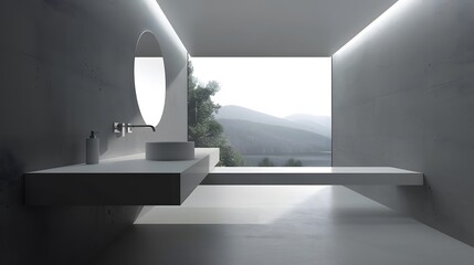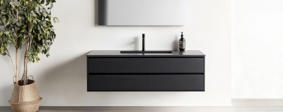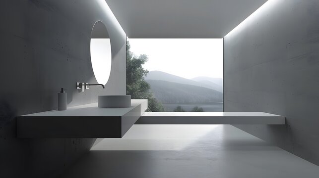Monolithic floating vanity carved from a single block of granite, natural luxury appeal