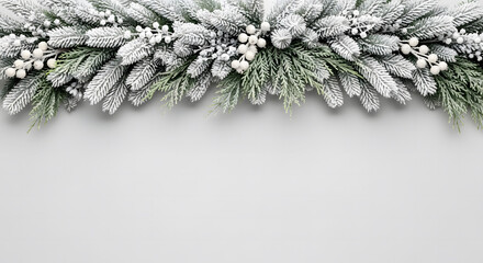 Flocked evergreen pine and fir garland border with white berries