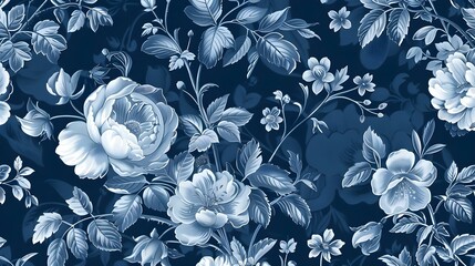 A blue and white floral patterned background with a blue