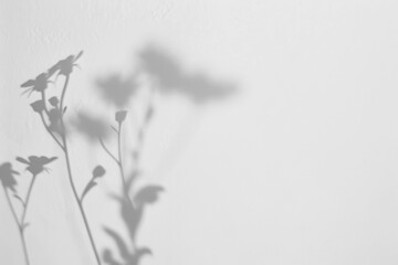 Leaf shadow on wall. Nature tropical leaves tree branch and plant shade with sunlight from sunshine dappled on white wall