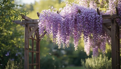 Purple wisteria floribunda in full bloom during spring, used as ornamental plant