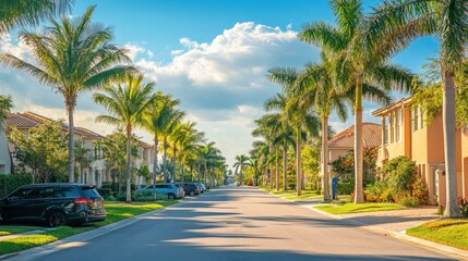 Tropical paradise with palm trees in Miami Florida