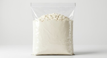 Bag of White Powder Filling Clearly Visible Plastic Container Isolated