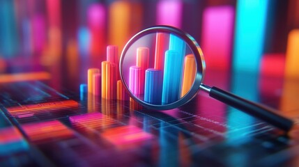 Futuristic translucent analytics dashboard with blue bar-and-line charts and pie charts