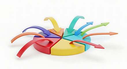 Colorful Pie Chart with Arrows Illustrating Data Flow and Analysis.