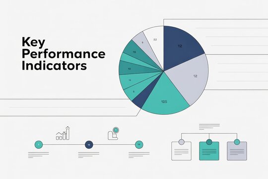 Displaying digital analytics dashboard with large numeric data and pie chart on navy grid