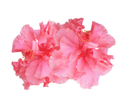 Floral corner arrangement with pink roses and eustoma flowers isolated on white or transparent background