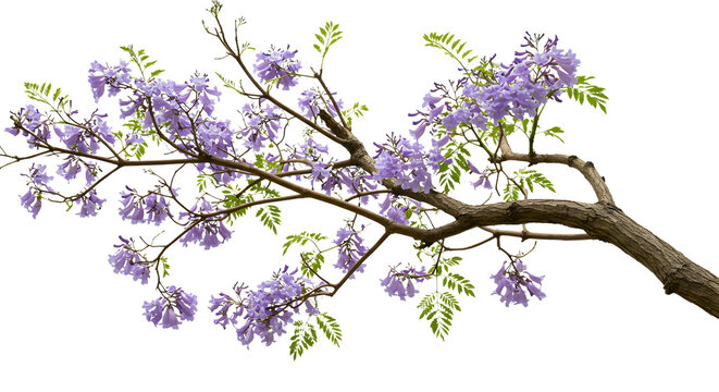 Delicate jacaranda blooms adorn a tree branch in springtime beauty