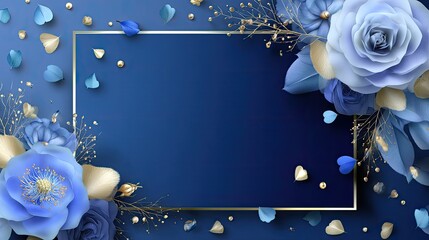 Elegant Blue Floral Frame with Delicate Leaves and Gold Accents for Stylish Background Decoration