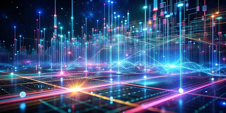 Digital Data Flow: Highlighting the intricate digital network of data processing, with illuminated folder icons representing information pathways and a complex data flow.