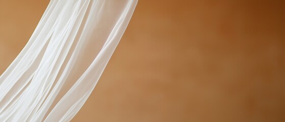 Flowing beige chiffon waves creating soft layered curves, sheer textures, minimal backdrop