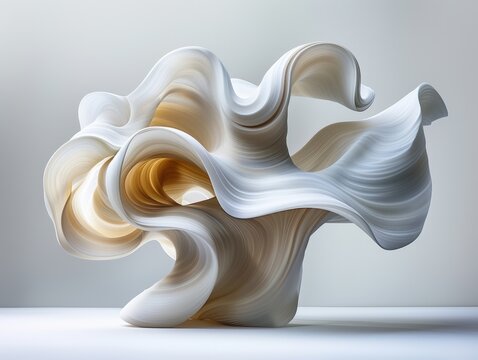 Abstract sculpture with flowing white and beige forms creating a dynamic scene