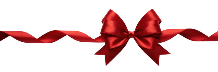 Elegant red satin ribbon tied into a decorative bow with flowing streamers isolated on transparent background