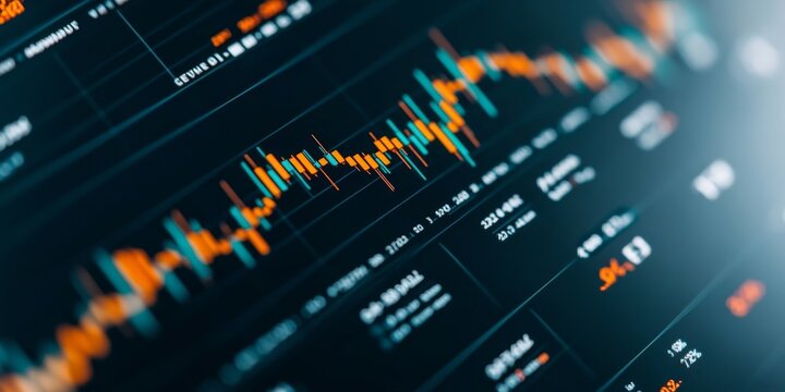 stock market data analytics chart display on digital screen - close-up view of fluctuating financial indicators for business and finance concepts