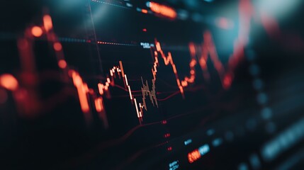 A dynamic graph with vibrant red and orange lines against a dark background, showcasing fluctuating data trends in a visually striking manner