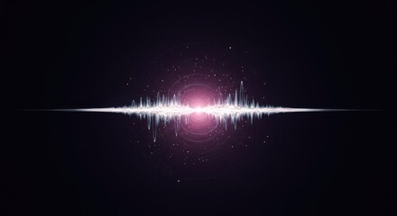 Abstract futuristic background with a glowing blue digital waveform representing data, finance, or audio signal fluctuations on a dark grid.