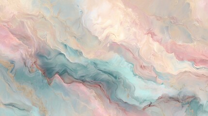 Smooth pastel marble texture with fluid motion, soft swirling patterns, delicate blending of soft beige, blush, mint, and lilac, glossy stone like